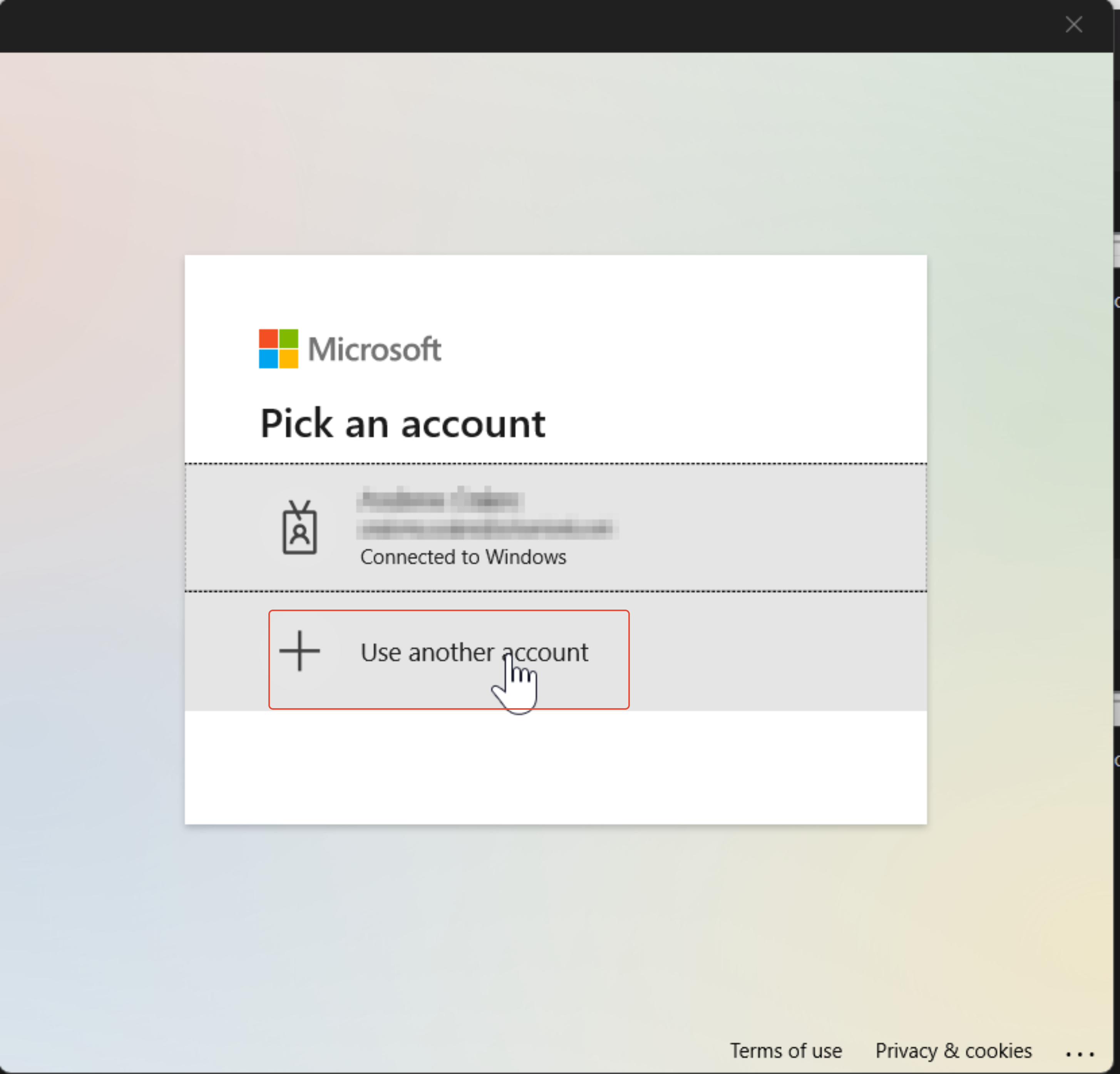 - After that, it will ask you to sign in. If you already have a Microsoft account, ignore the option to login using that account, and instead select Use another account.