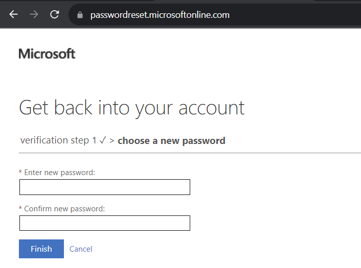 - Lastly, enter and confirm your new password, and click Finish.