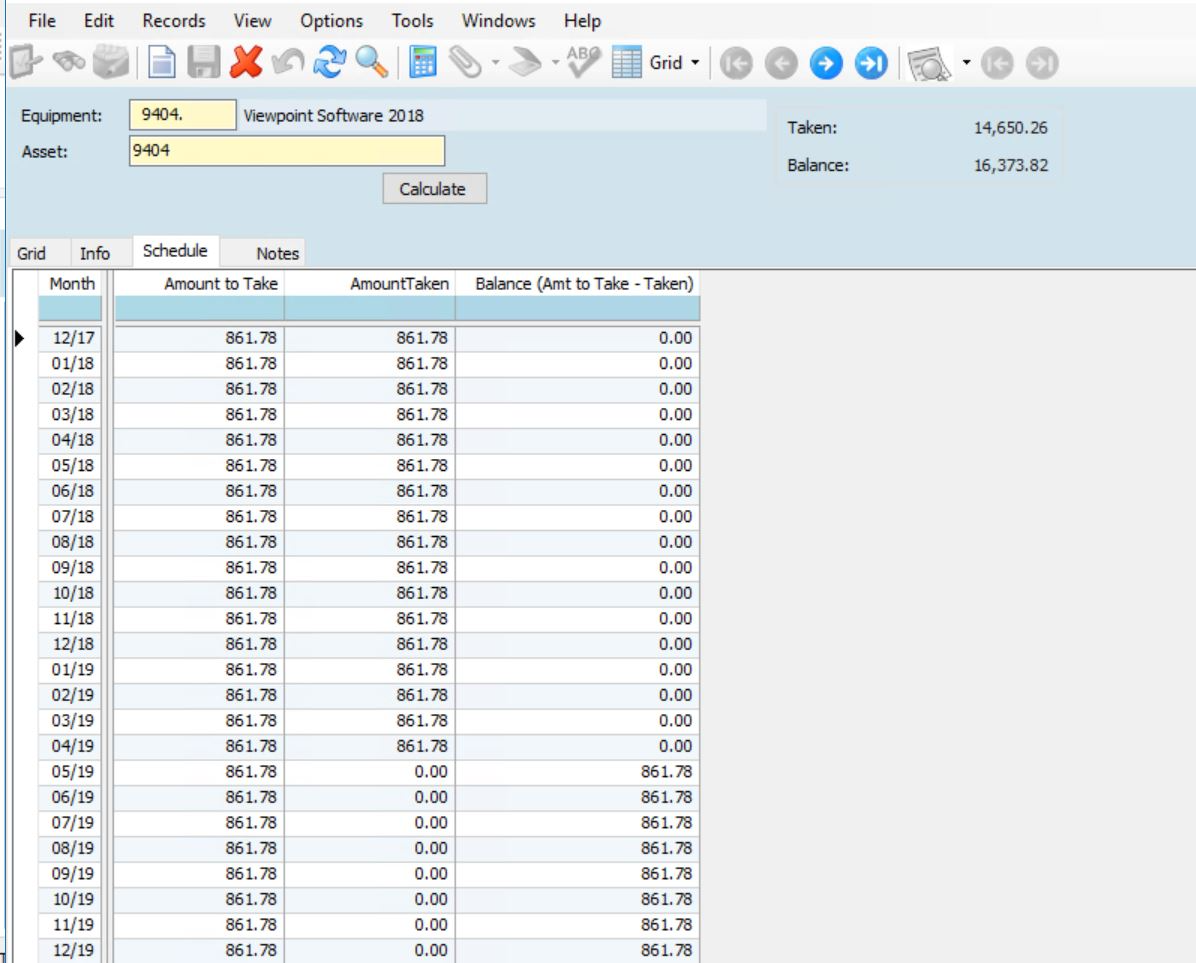 Go to the Schedule tab and click Calculate to compute months and depreciation amount
