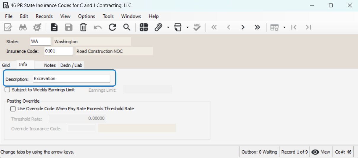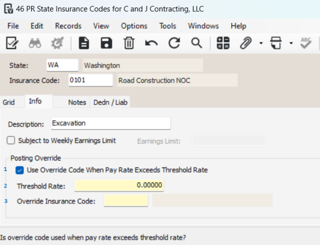 This field is used only when the Use Override Code When Pay Rate Exceeds Threshold Rate box is checked. Enter the threshold rate for this insurance code.