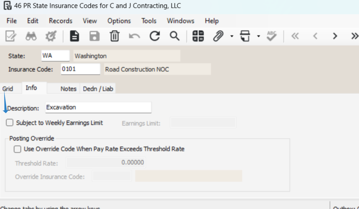 Check this box if deductions and liabilities for this insurance code are subject to a weekly wage limit.