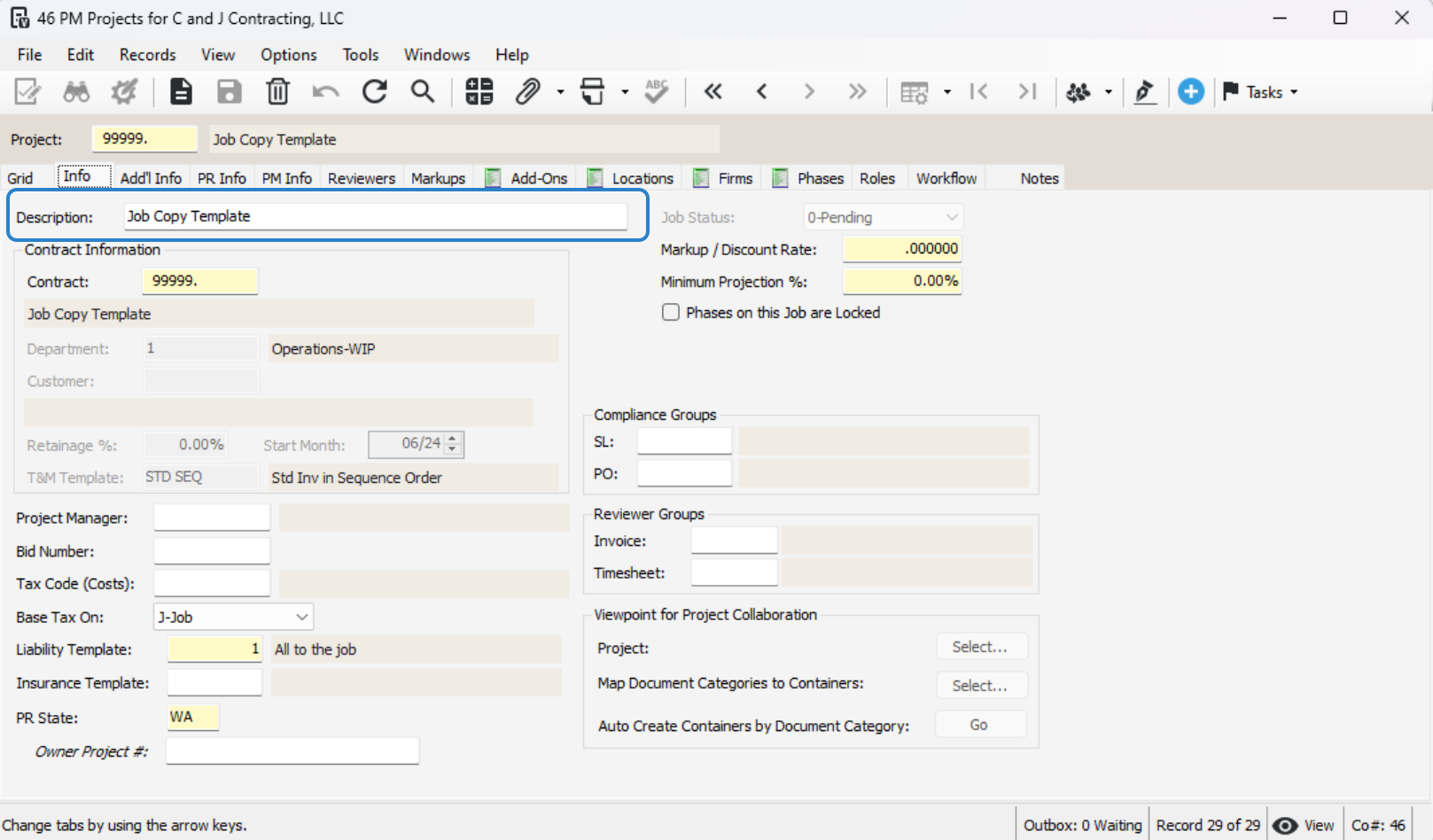 If creating a new project, find the next job number and add a description.