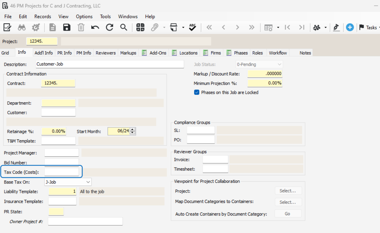 Add tax codes applicable to the job.