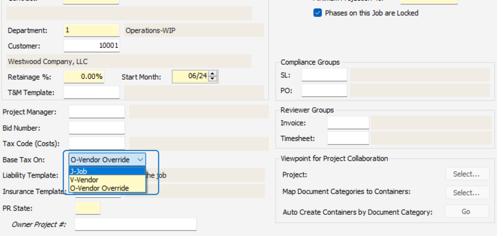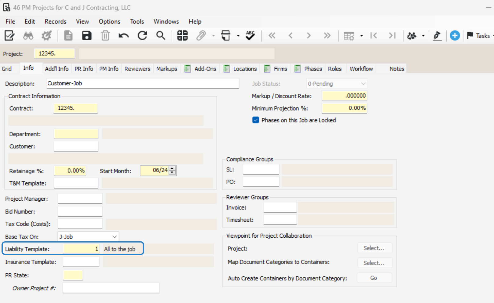 Set up job vendor override and liability template as needed.