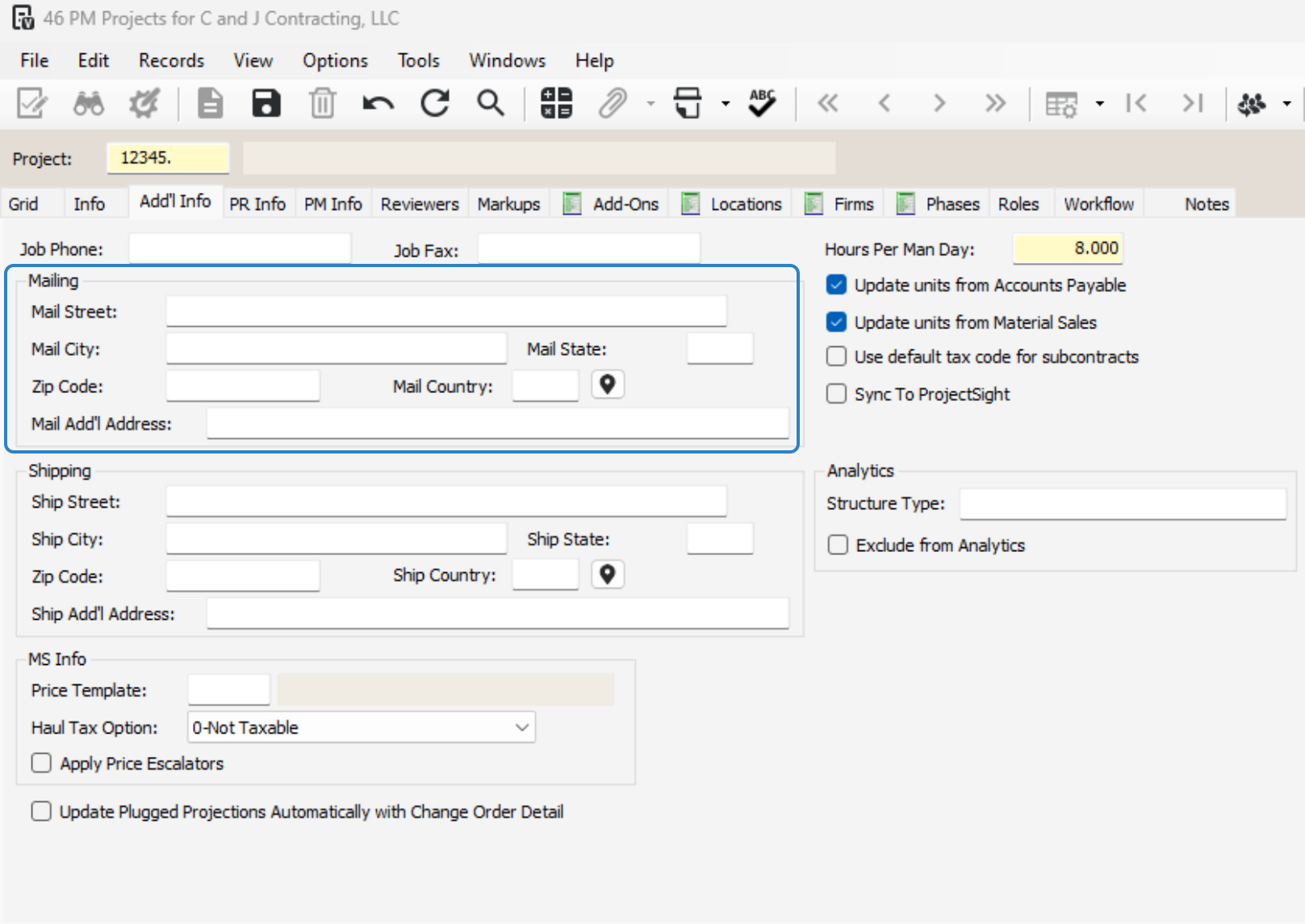 Modify these fields if necessary; they will be gray if not editable.
