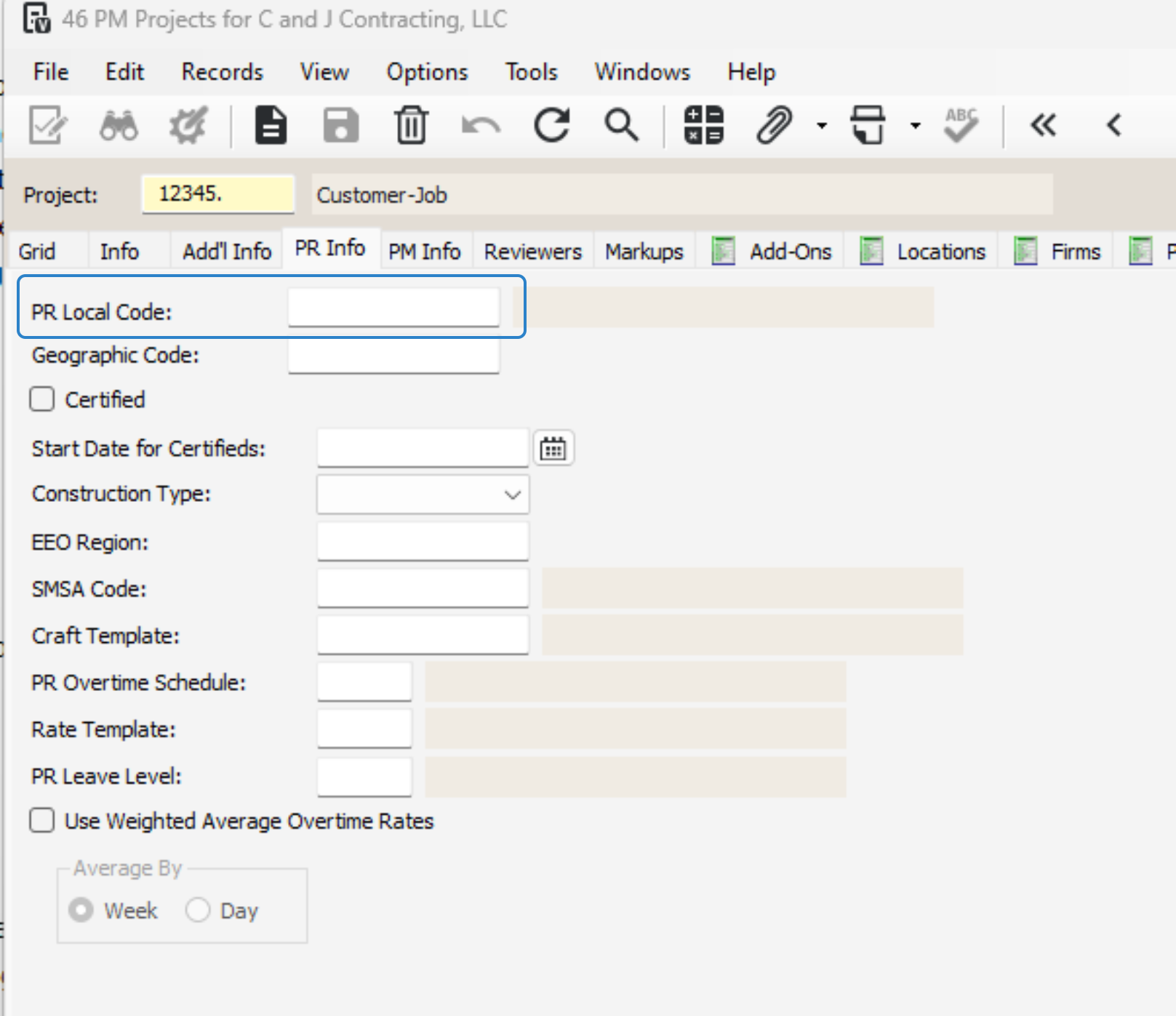 If applicable, track geographic location and check for certified payroll requirements.