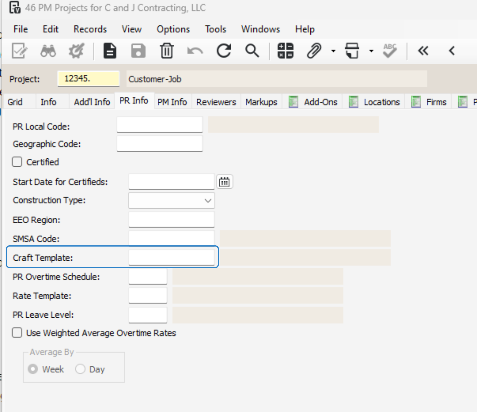 Assign craft class template for prevailing wage jobs.