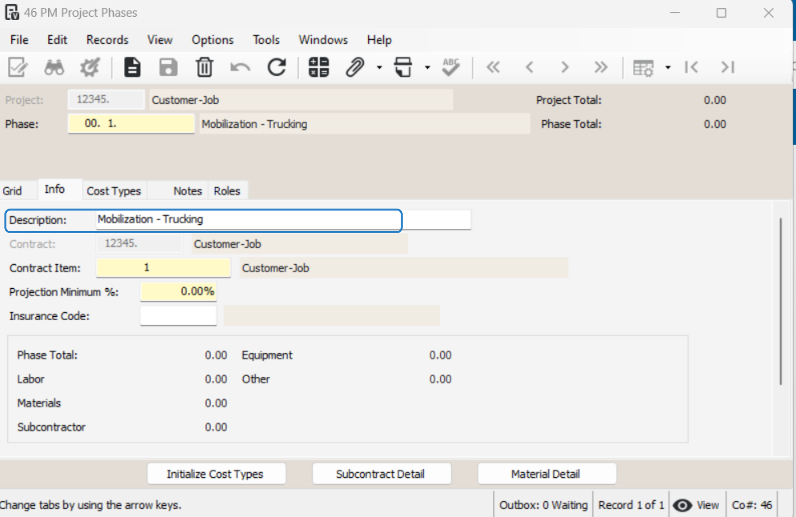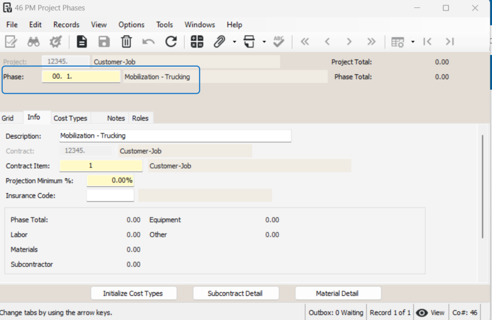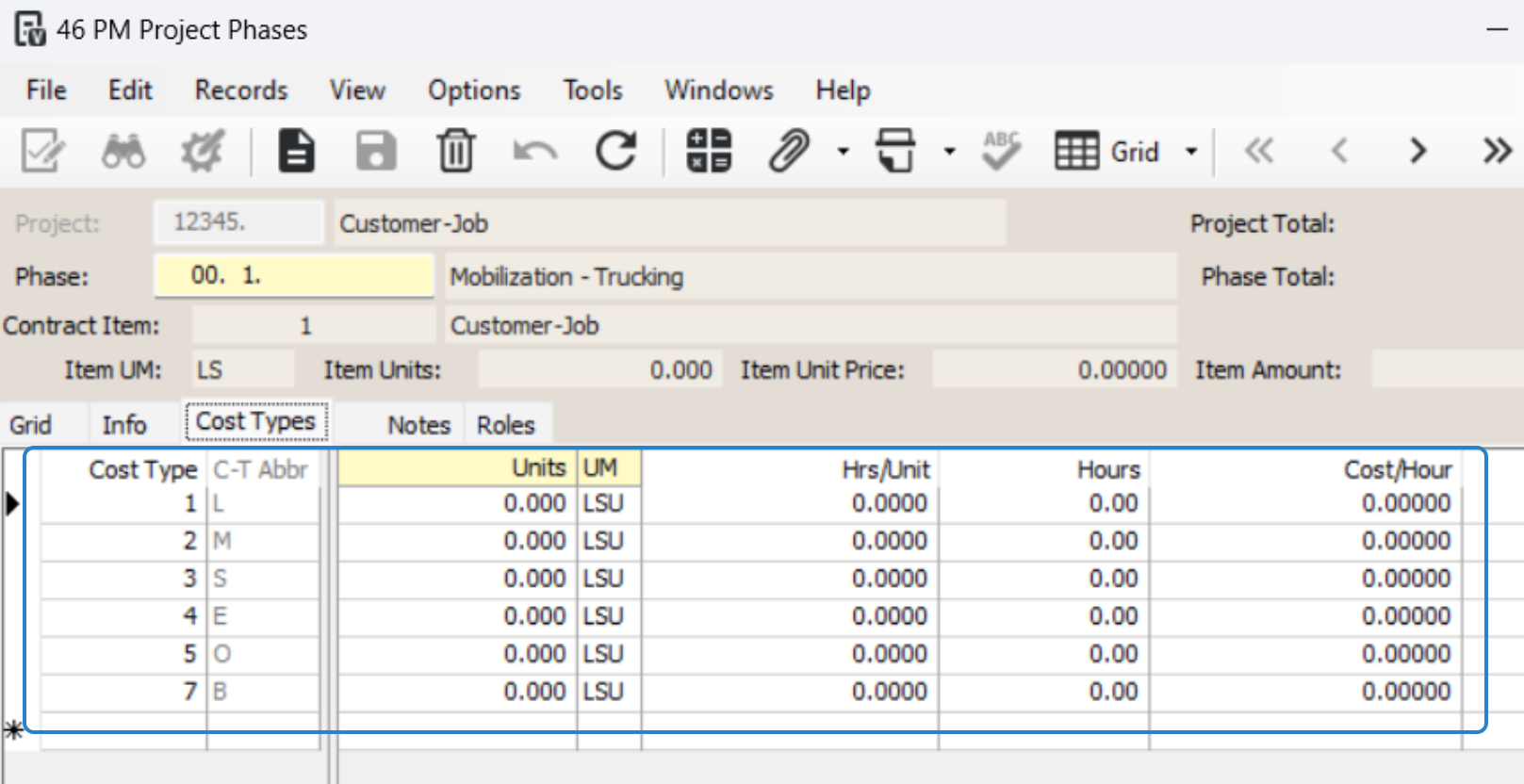 Use the Initialize Cost Types feature to automatically add all relevant cost types to the phase.