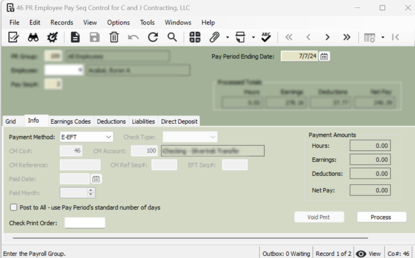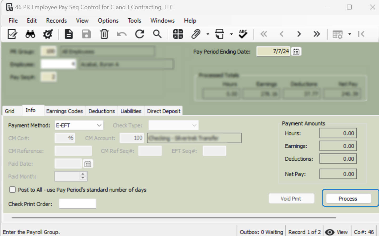 Payroll> Programs> PR Employee Pay Sequence Control