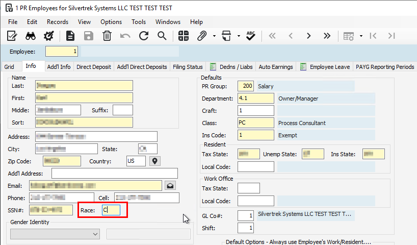 Choose the option you wish to report this Race Code as to the state website. The Customization will use the LI Ethnic Type from the Race Code that is entered in PR Employees > Info tab > Race.