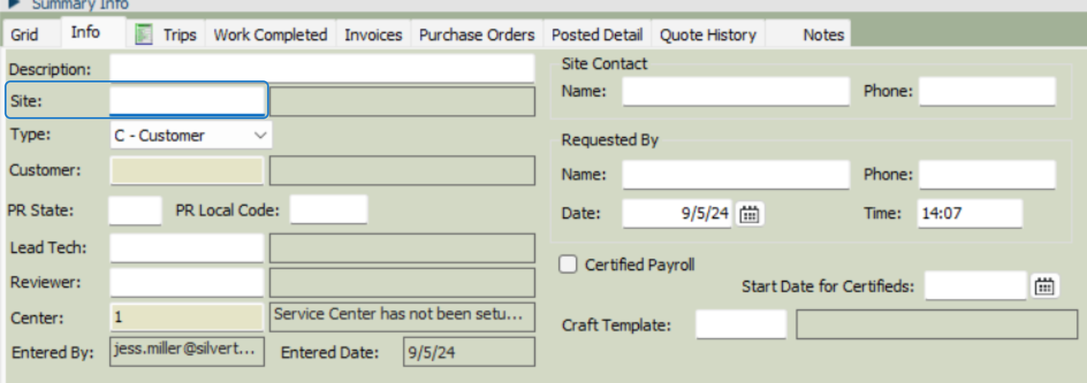 SMWO4. Customer: selecting the service site should auto populate the customer.