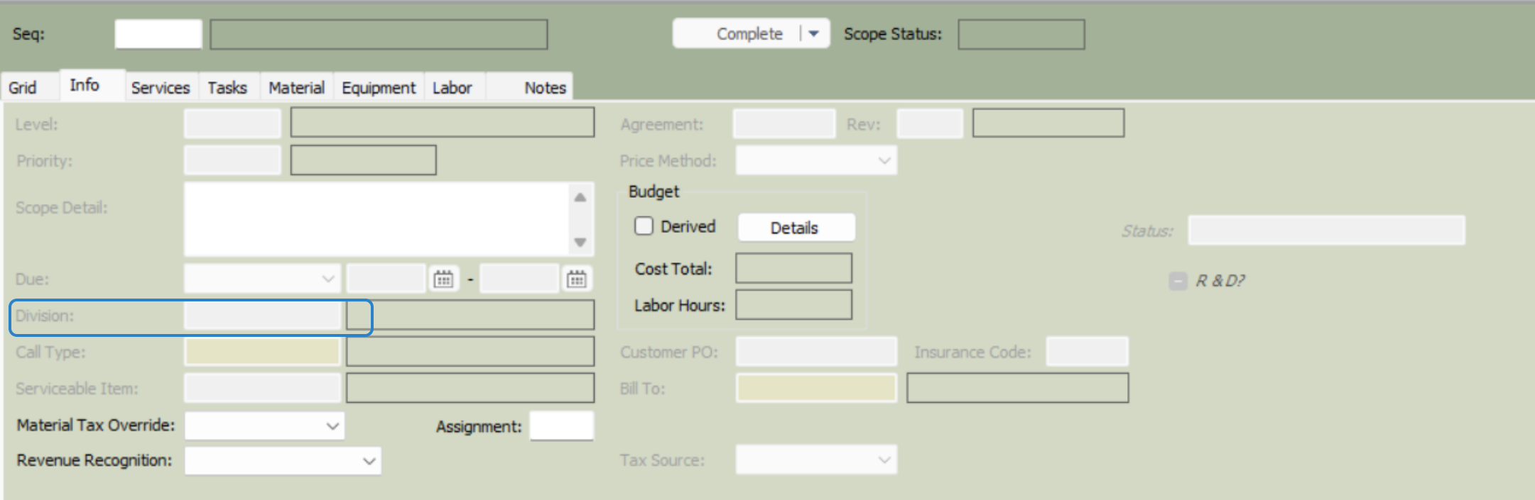 SMWO13. Scope Detail: Gather your scope details that the technician will need to use to complete the call.
