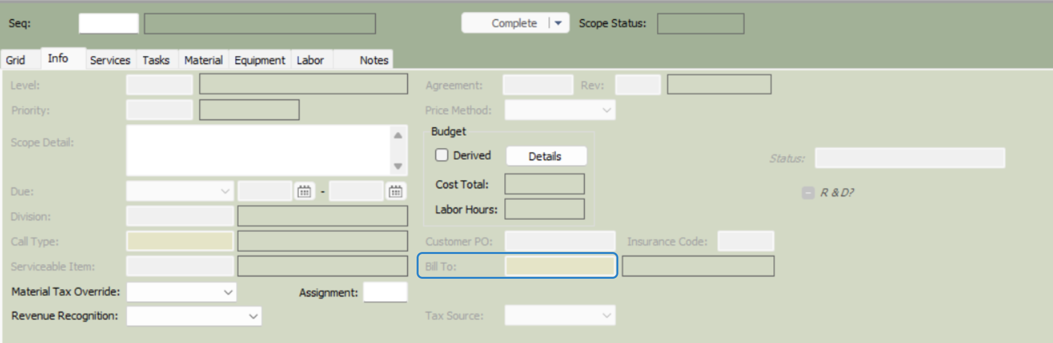 SMWO18. Bill To: Select the customer this will be billed to.