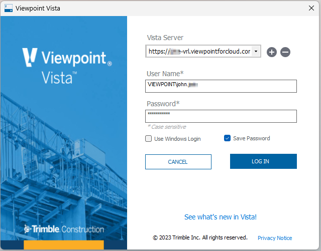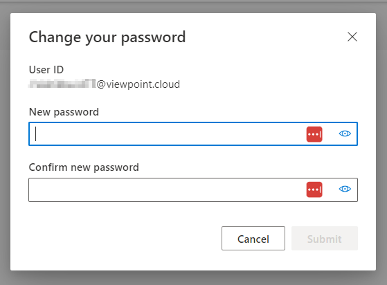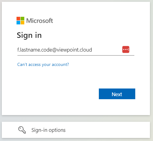 - Sign in with your account in the form [first inital].[last name].[company code]@viewpoint.cloud