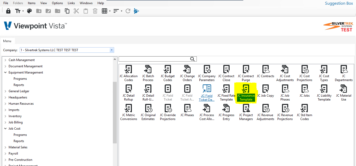 4. Equipment Management > Programs > Double click JC Insurance Template