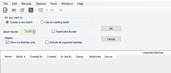 1. Choose the batch month of the AP Transaction Entry that you need to edit/delete and click ok.
