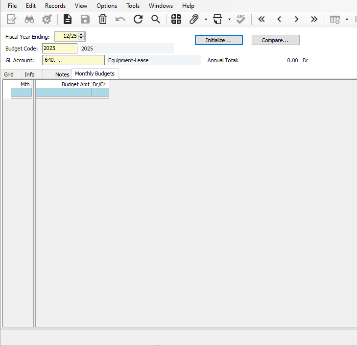 For specific GLs that don't automatically pull in set up months (example below).