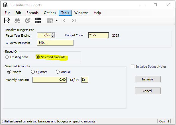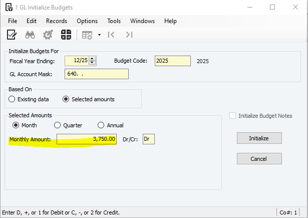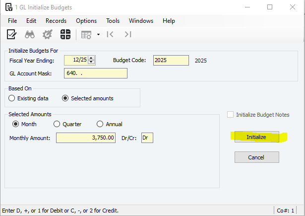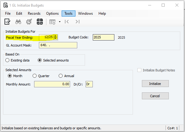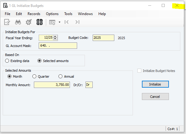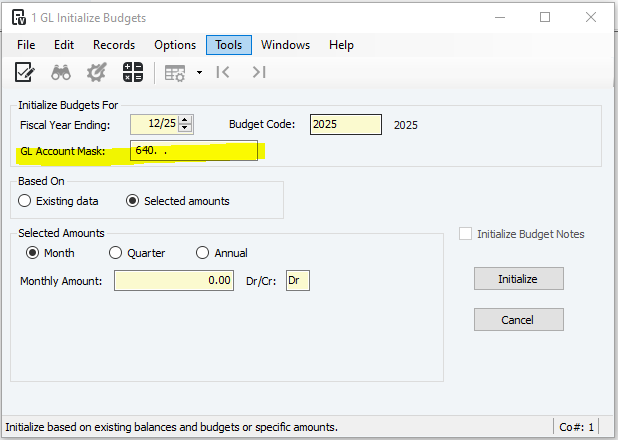 4. GL Account Mask: should automatically be the GL that you need to add months for, if not you can change it.