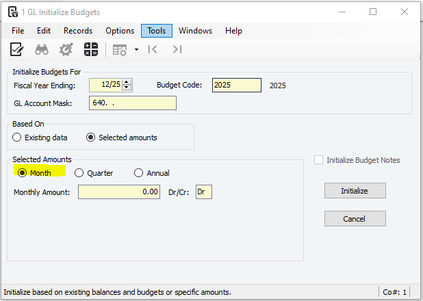 6. Make sure that Month is selected under "Selected Amounts"