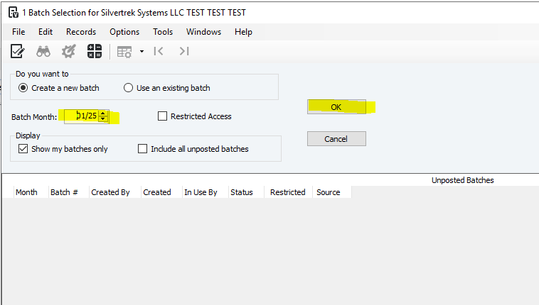 1. Chose a batch month and click OK