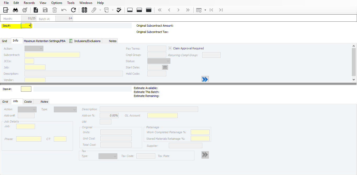 Subcontract Ledger > Programs > SL Subcontract Entry