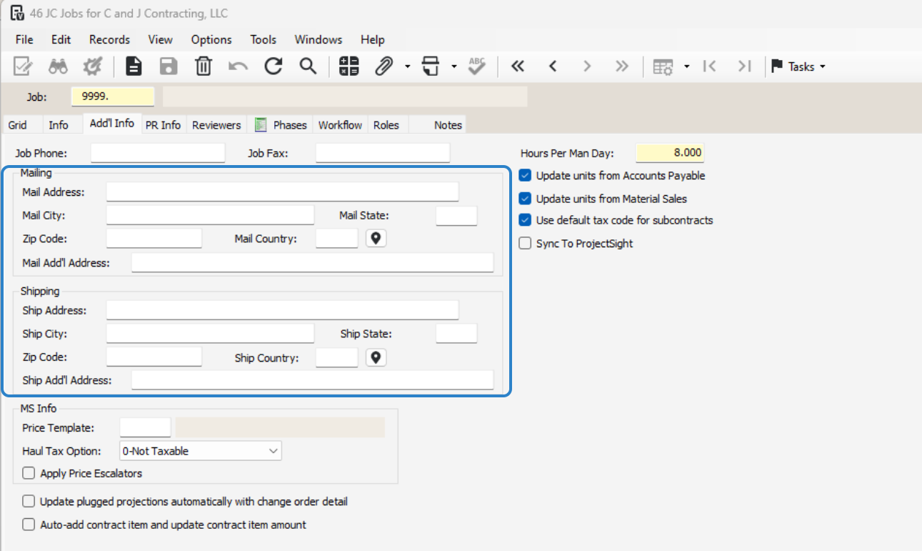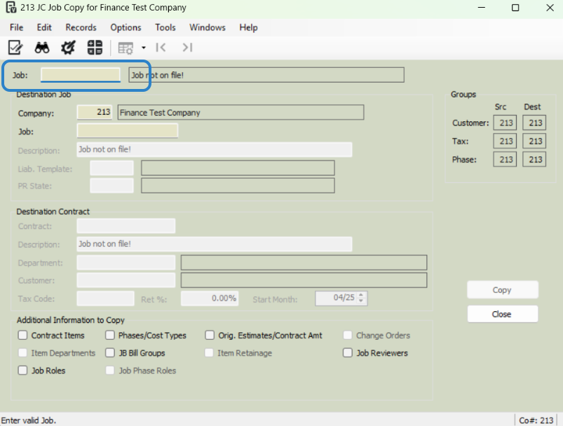 In the Job field, enter the next job number (e.g., 26005).