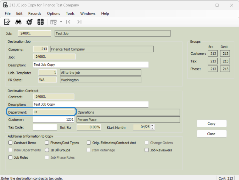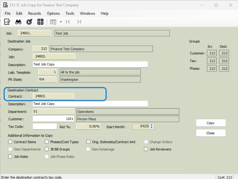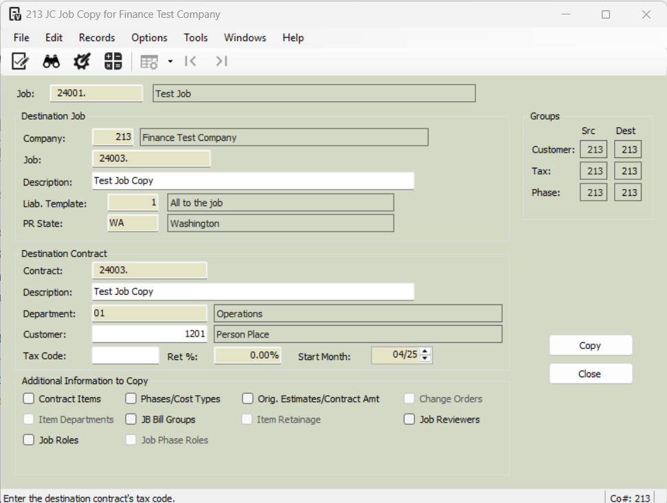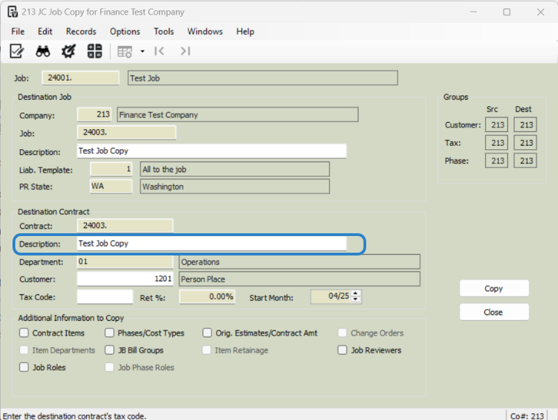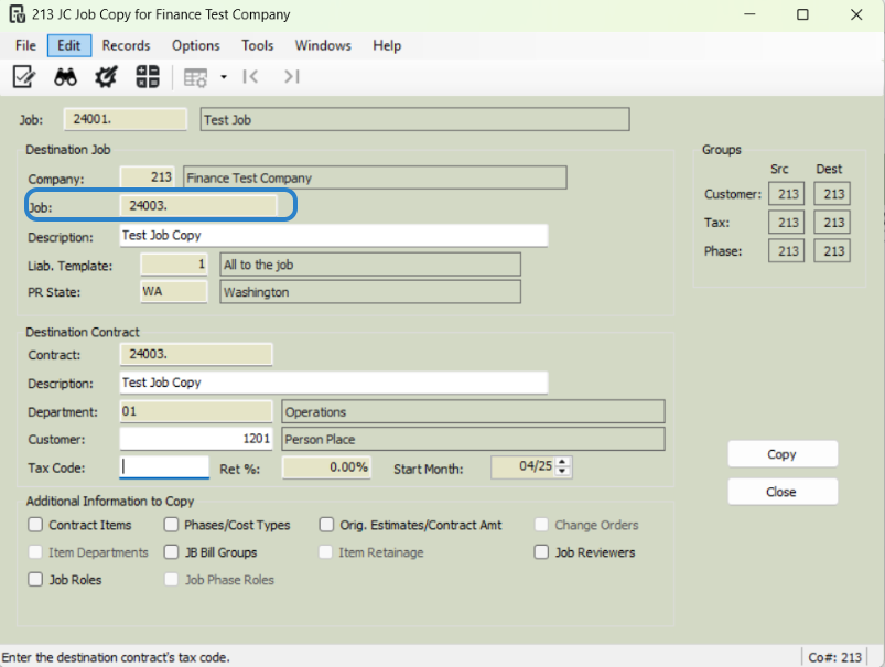 Click 'Copy' to finalize the job copy.
