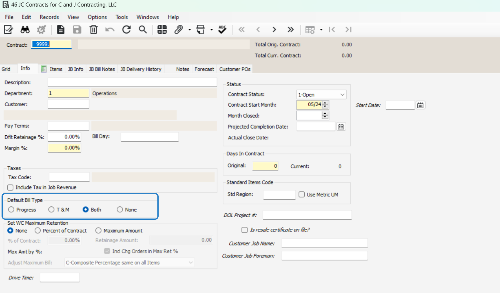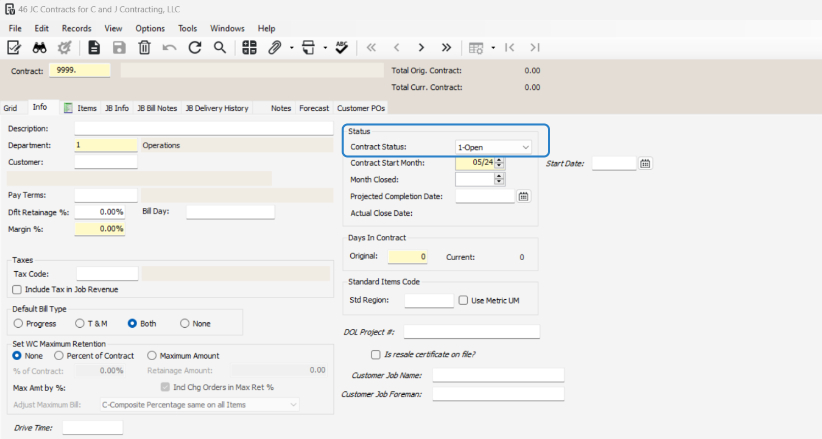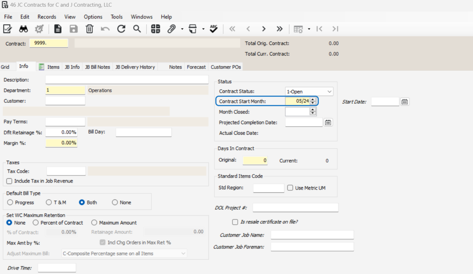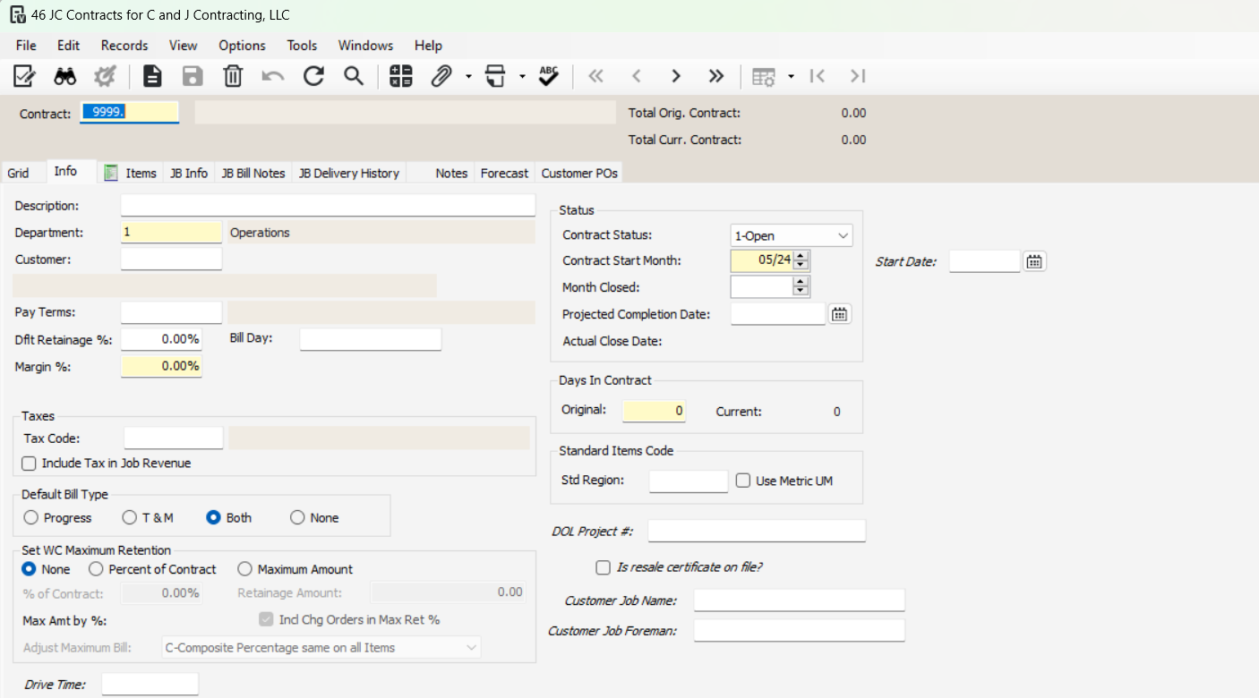 Double-check that the contract number matches the job number to prevent errors.