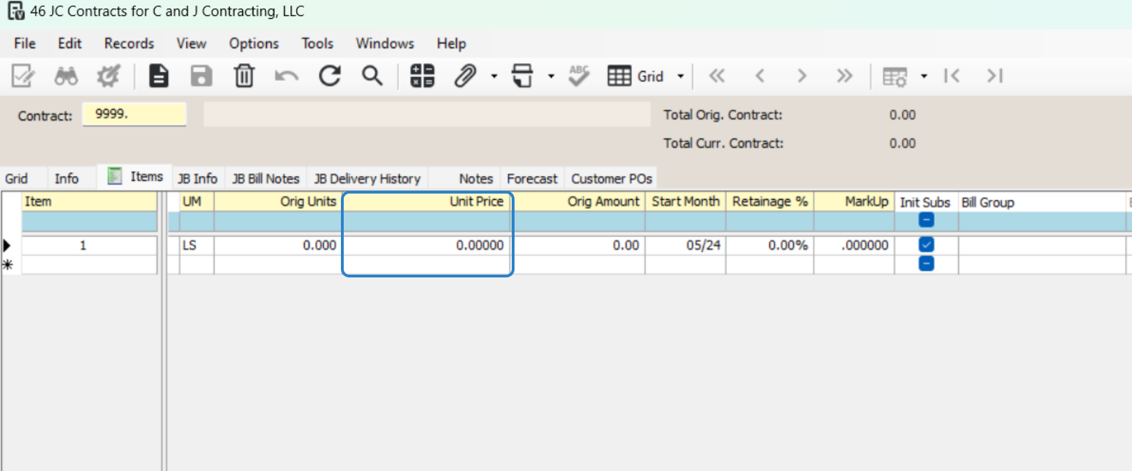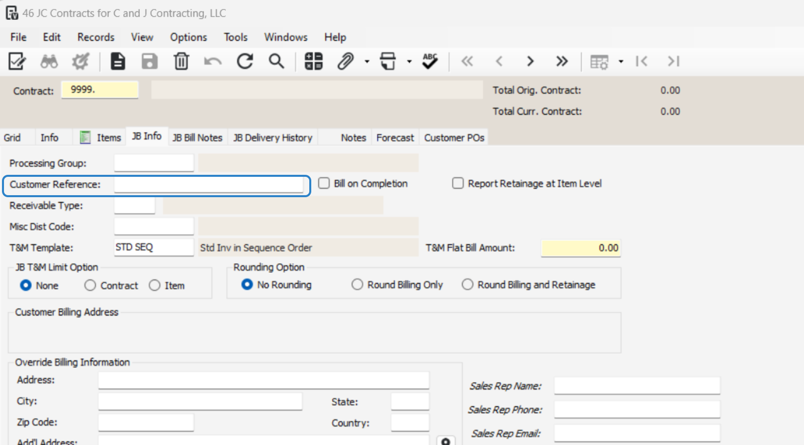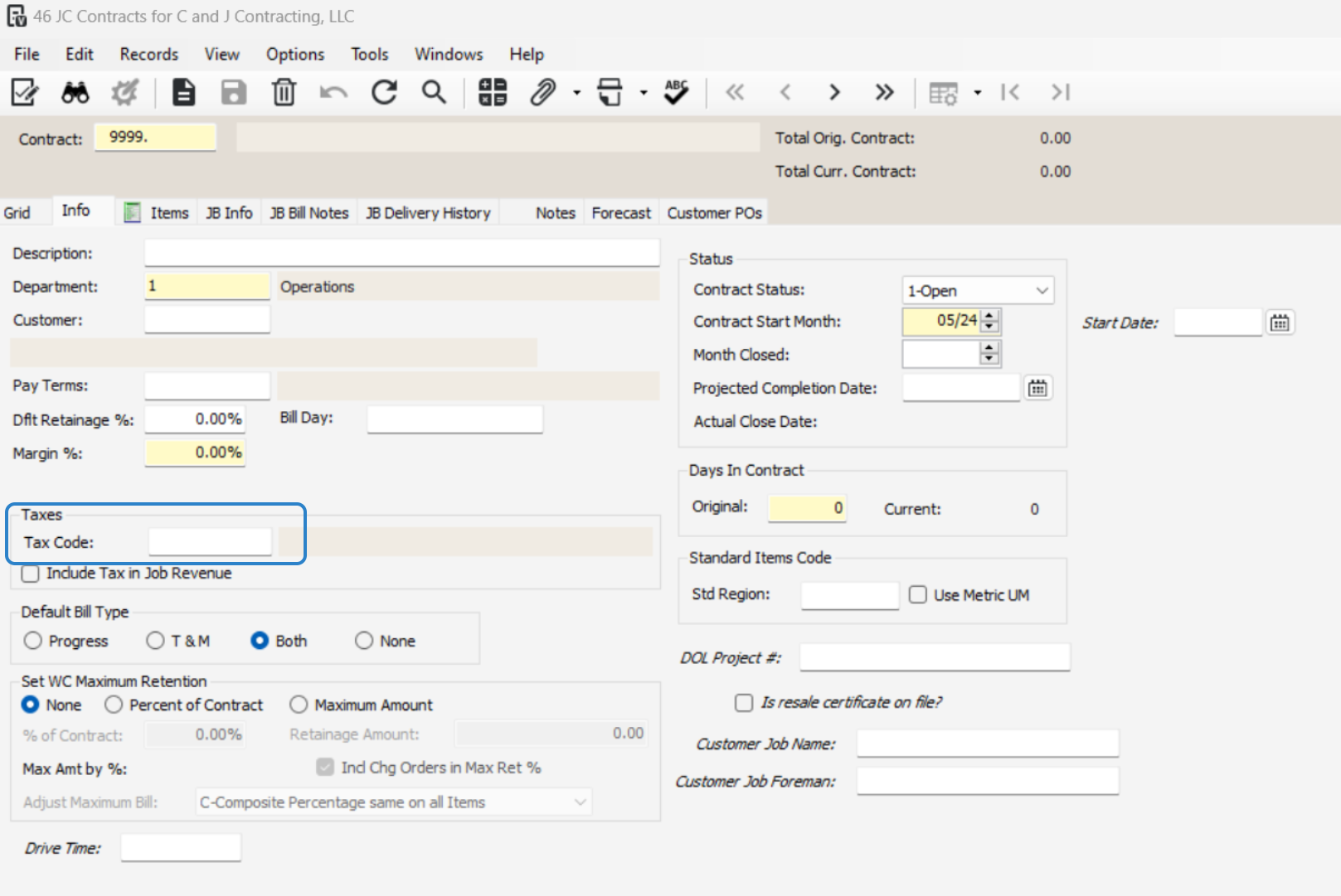 Double-check that the contract number matches the job number to prevent errors.
