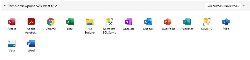 - Log in with the AVD Microsoft account. The email will be in the format F.Last.CODE@viewpoint.cloud