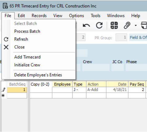 Go to Payroll>Programs>PR Timecard Entry, using the current pay period ending date and pay sequence #2