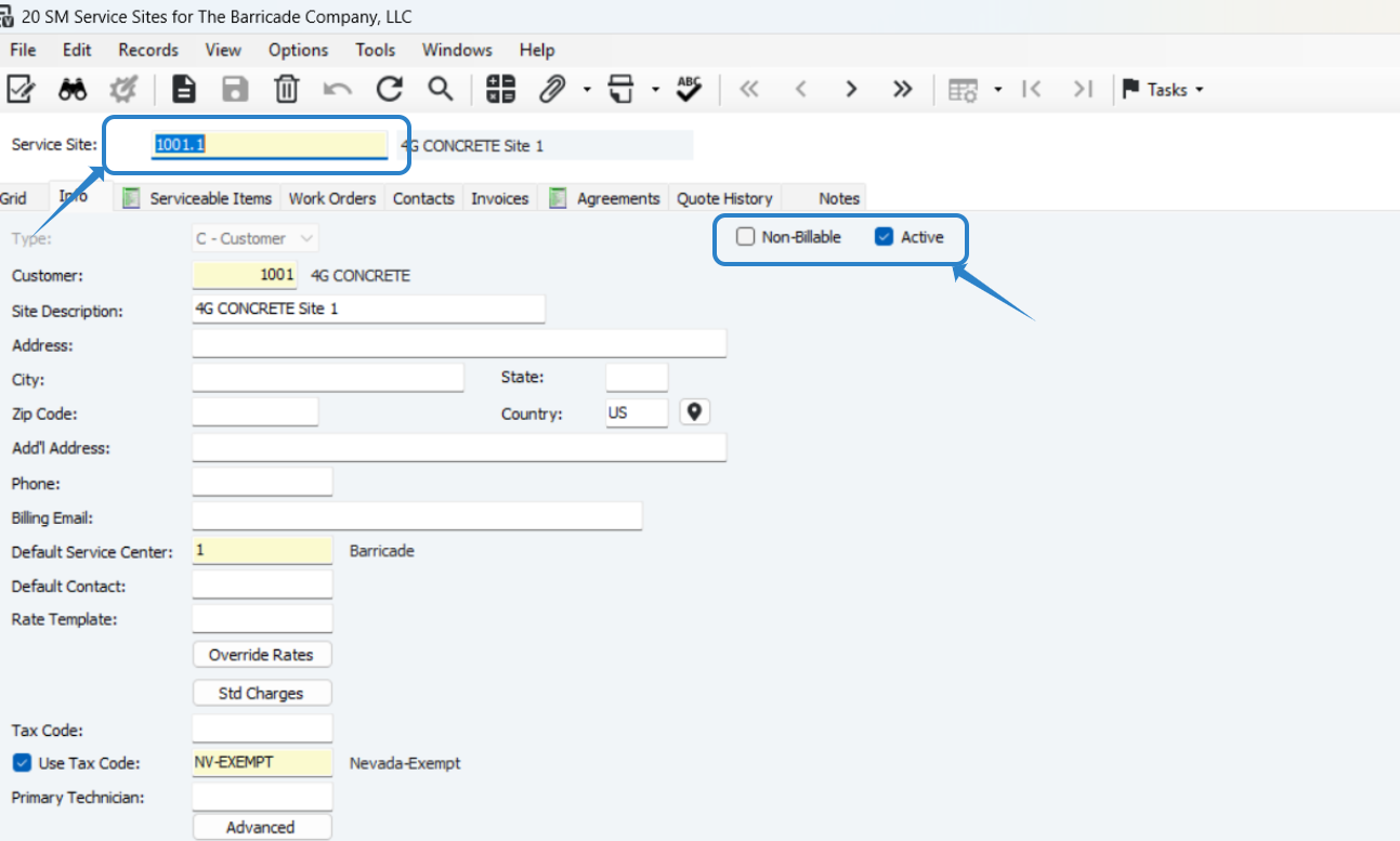 This defaults to Active, if this is a Non-Billable site you can check that box.