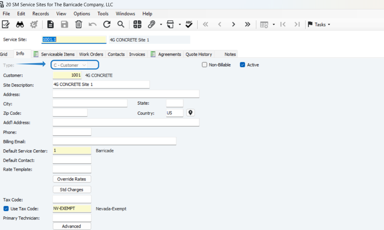 - C – Customer: Use this if the site is for a customer (linked to an SM customer).