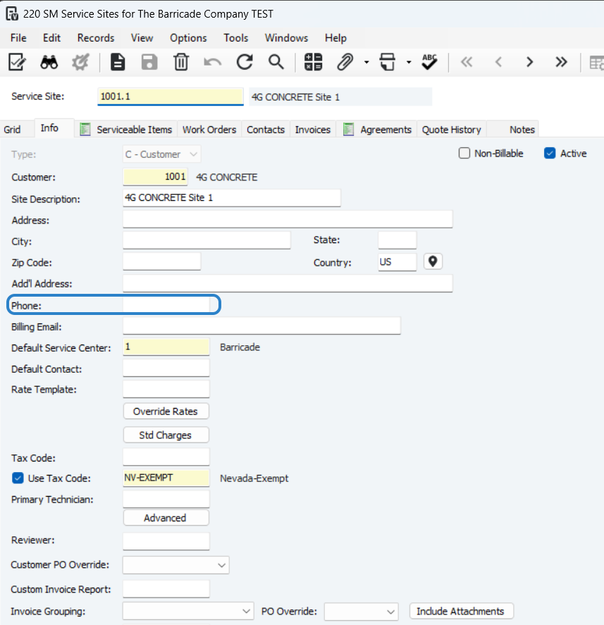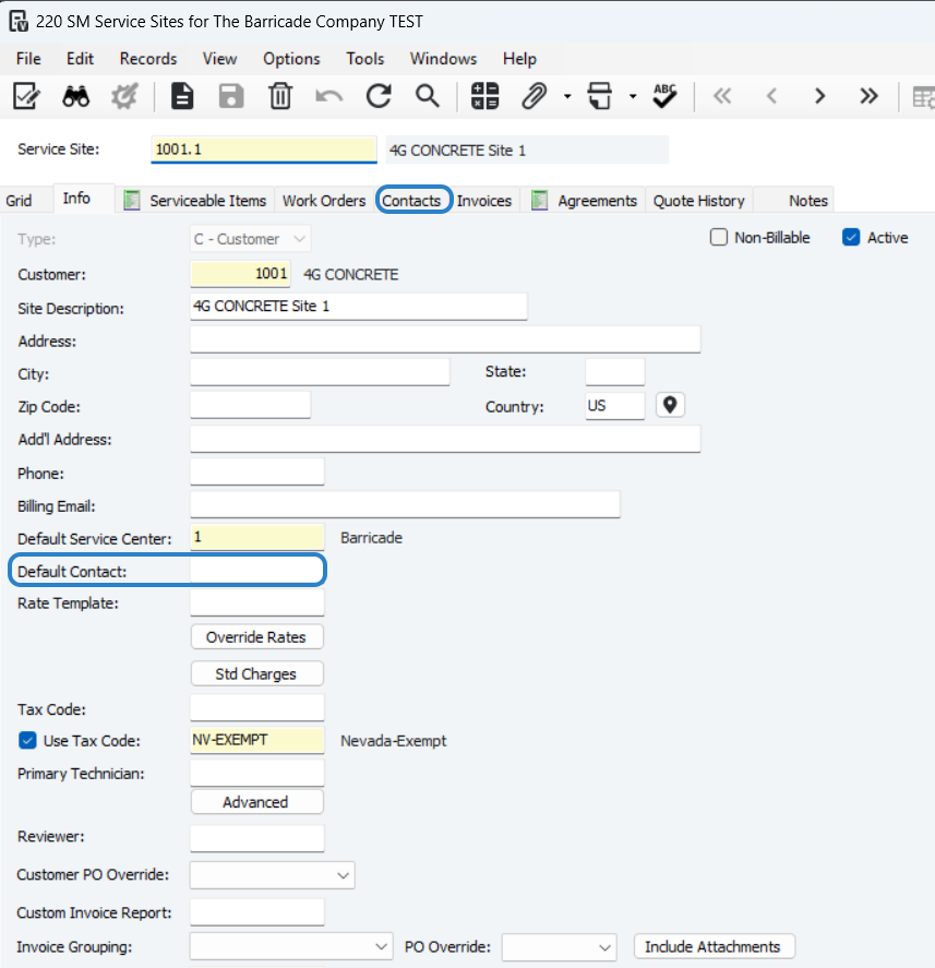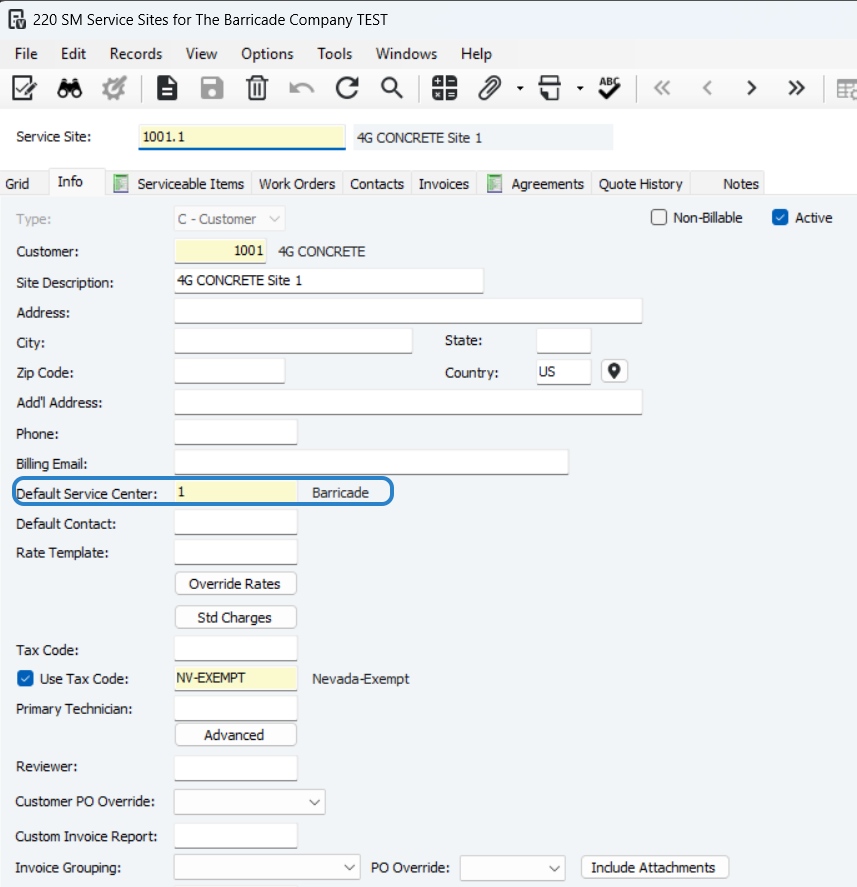 If you have a charge related to a specific service site for each SM Work Order created you can set it up here, see both images for reference