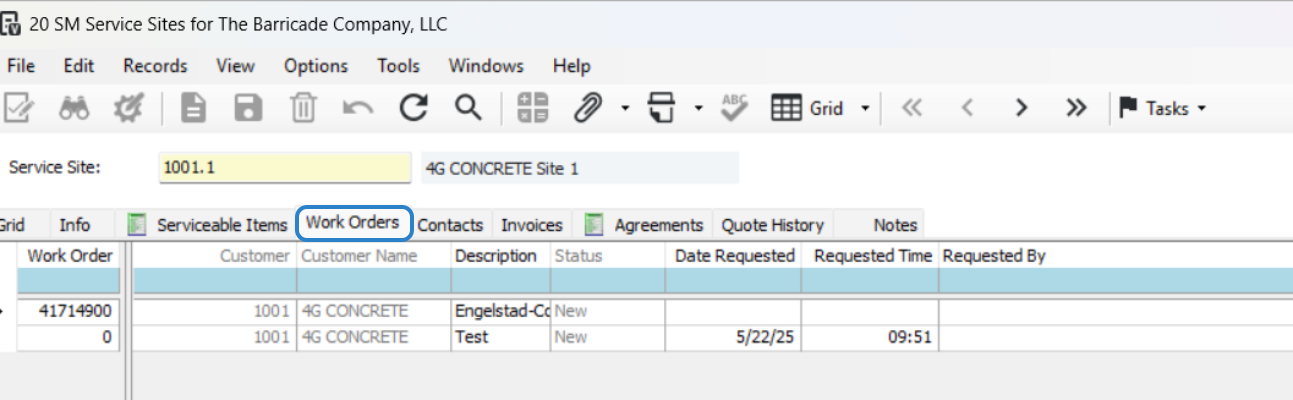 This allows you to see all work orders created to this Service Site