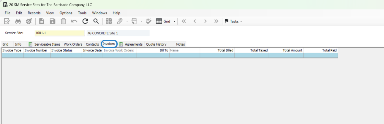 This allows you to see all invoices created to this Service Site