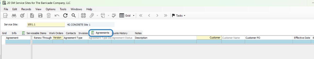 This allows you to see all agreements created to this Service Site