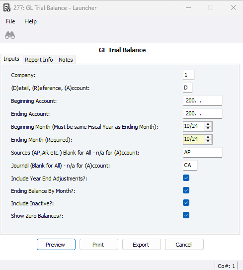 - Run a GL Trial Balance for the affected AP GL account and month.